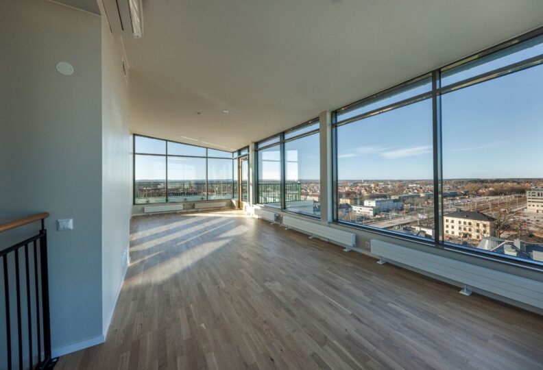 En unik etagelägenhet med penthouse känsla, två rejäla balkonger på plan 1 och två enorma terrasser på plan 2 med en panormautsikt över hela Örebro.